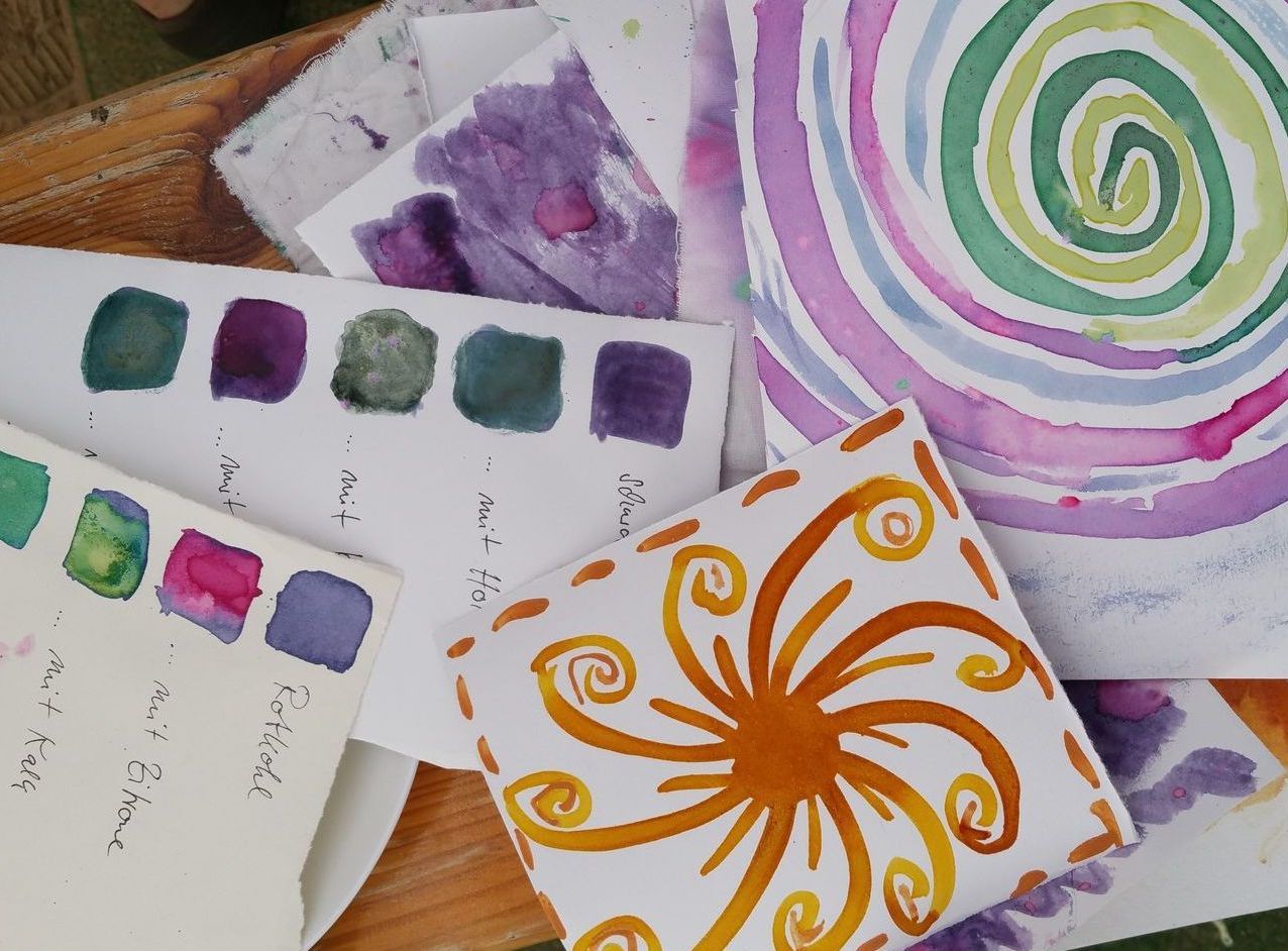 Ich freue mich nun darauf, dass die sevengardes - Grundlagen - Workshops nun regelmäßig hier stattfinden werden. Auch weiterführende Kurse zur Pigmentgewinnung und Herstellung weiter Malfarben, und ein kreatives Programm für Kinder und Erwachsene sind nun möglich. Alles was ich je aus den Farben gemacht habe, ist in einer Ausstellung zu sehen, und ich freue mich auf den Austausch darüber. Meine Bilder und andere kleine kreative Schöpfungen werden immer mal wieder wechseln, und Tage der offenen Ateliertür laden ein zum Staunen und zum Austausch.
